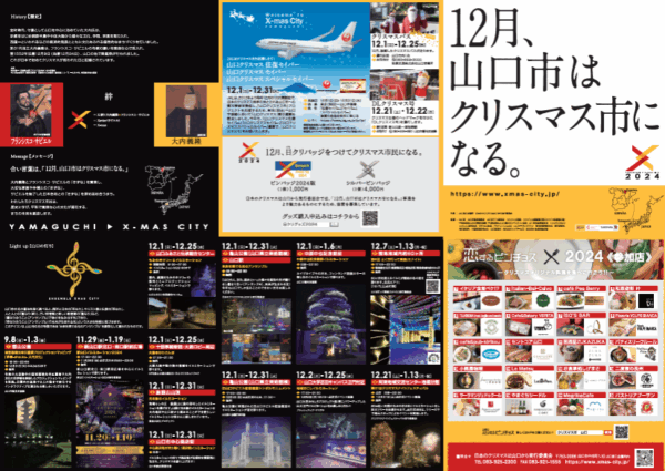 「12月、山口市はクリスマス市になる。」を合言葉に、市内各所で「灯り」や「音楽」、「美術・舞台」、「食」、その他のイベントを開催します。