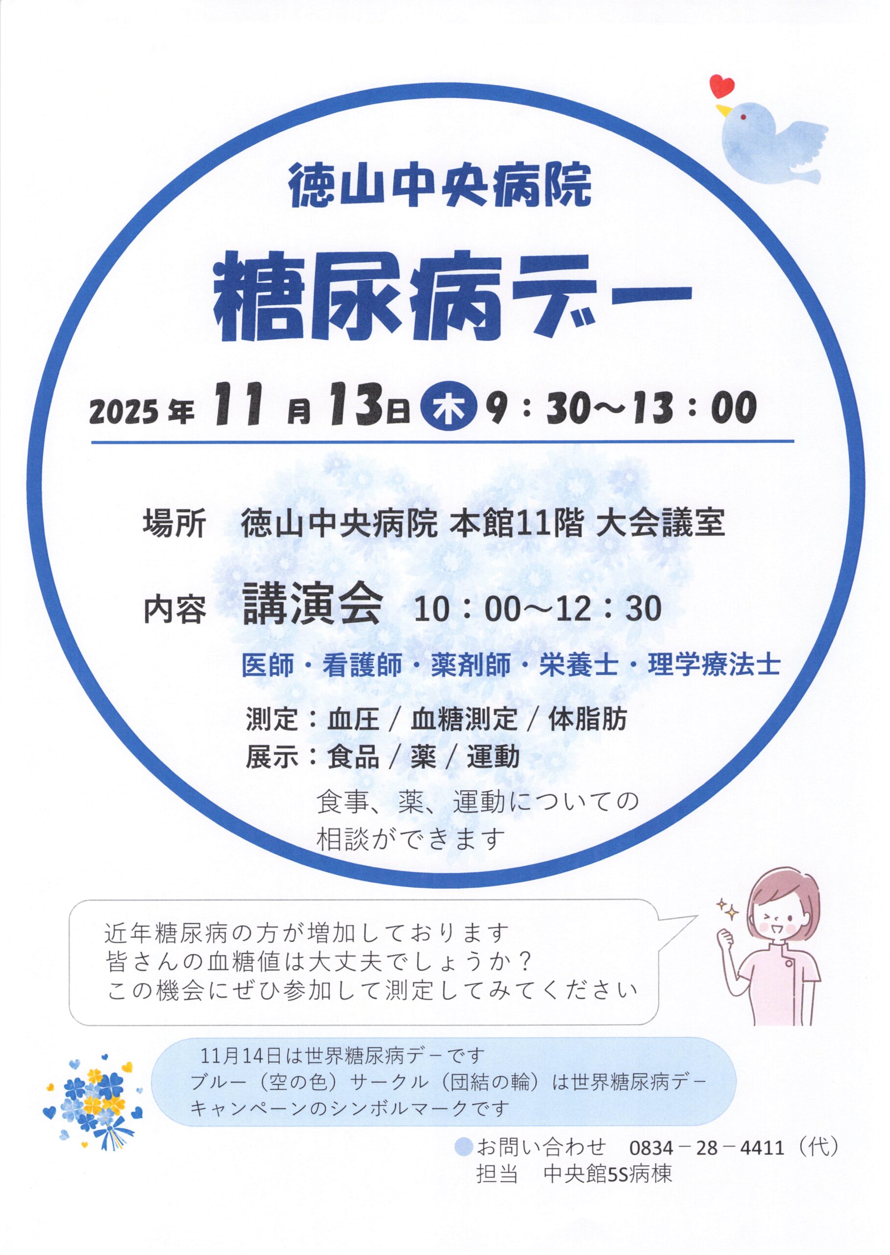 今回、医師、看護師、薬剤師、栄養士、理学療法士などによる「糖尿病」に関する講演会を開催します。