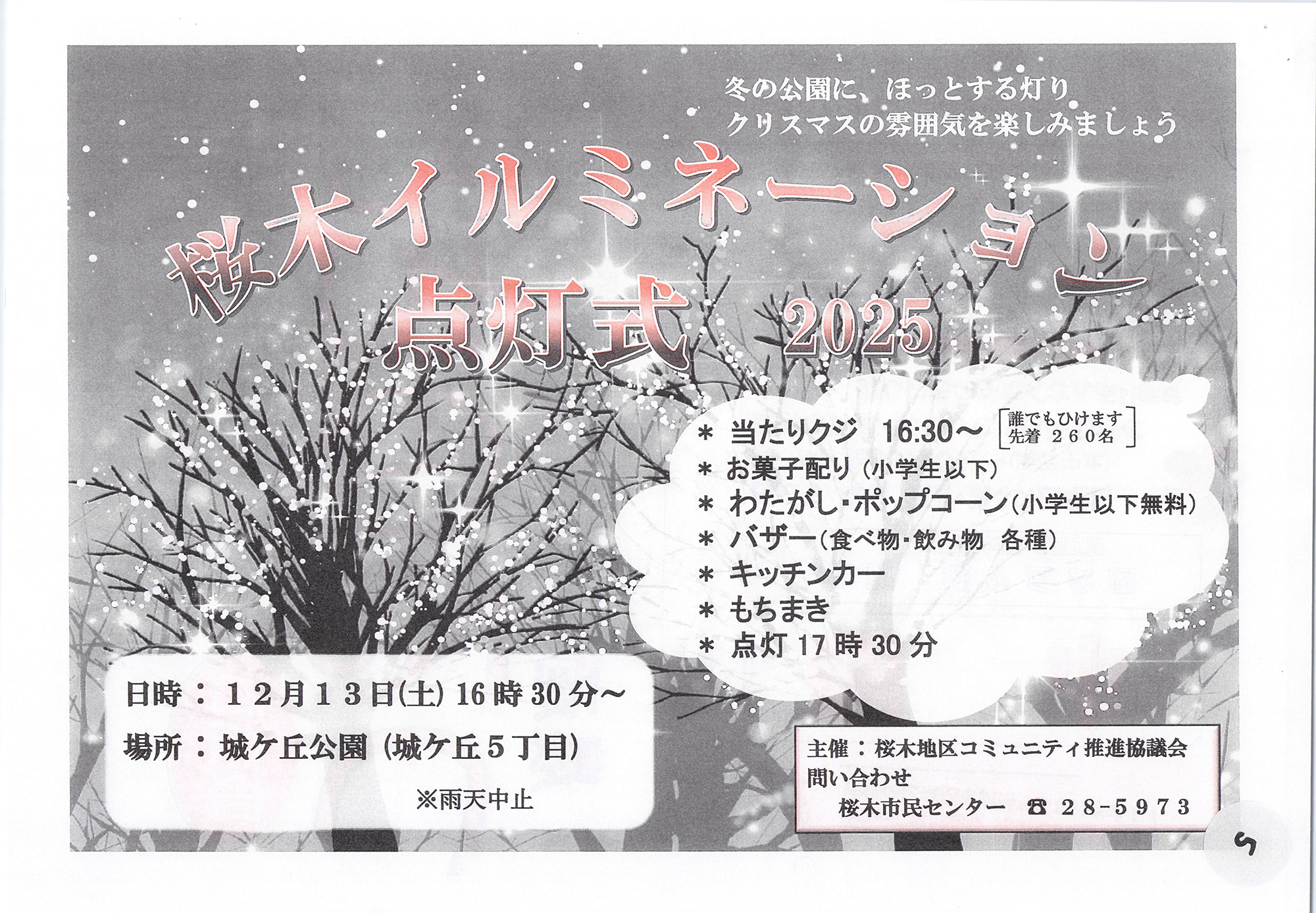 日時:令和7年12月13日(土)16:30~(雨天中止) 場所:桜ヶ丘公園(周南市桜ヶ丘5丁目)