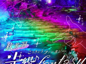 期間限定で、秋芳洞がカラーライトアップ、幻想的な光と音に心奪われ非日常的な空間を味わう事が出来ます。