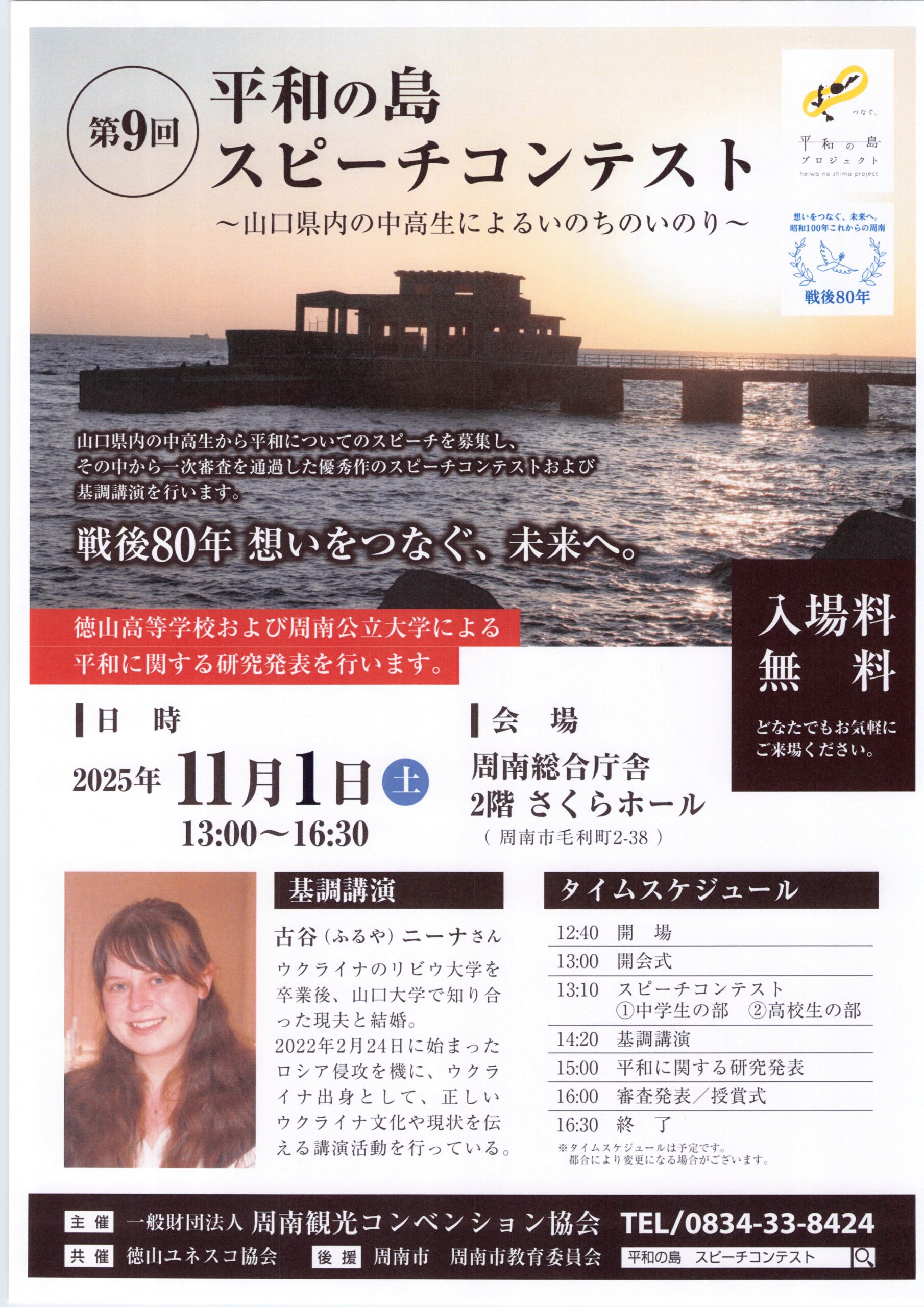 さらに今年は、戦後80年の節目なので、山口県立徳山高等学校および周南公立大学の生徒・学生による平和に関する研究発表の場も設けます。