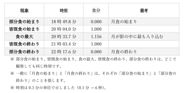 この皆既月食は、日本全国で、部分食の始まり(月の欠け始め)から部分食の終わり(月の欠け終わり)までの全てを見ることができます。