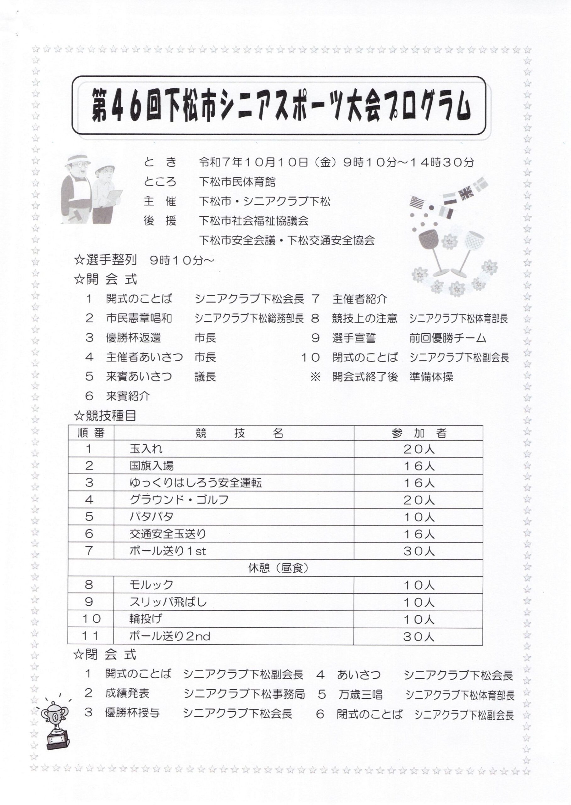 約300人が参加して、スポーツを通して高齢者同士の交流の輪を広げ、あわせて健康増進を図ることでふれあいと活力に満ちた長寿社会の形成を行う。
